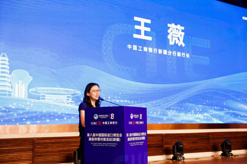 (新疆金融网讯)8月6日,第八届中国国际进口博览会展前供需对接活动在新疆维吾尔自治区伊犁哈萨克自治州举办。本次活动由中国国际进口博览局、新疆维吾尔自治区商务厅、中国工商银行新疆分行、国家会展中心(上海)共同主办,伊犁哈萨克自治州商务局、中国工商银行上海市分行协办。中国国际进口博览局宋尚哲,新疆商务厅党组成员、副厅长刘波,伊犁哈萨克自治州商务局党组书记杨雪莉,工商银行新疆分行党委委员、副行长王薇出席活动并致辞。