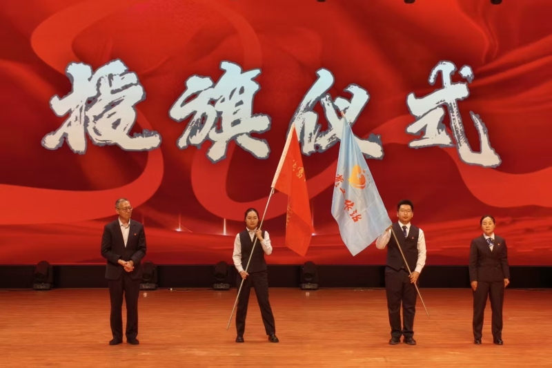 宣讲活动中,还进行了庄严的授旗仪式。图为建设银行巴州分行代表接受“张富清金融服务队”队旗和“向党工作站”站旗。石榴云/新疆日报记者冉虎 摄