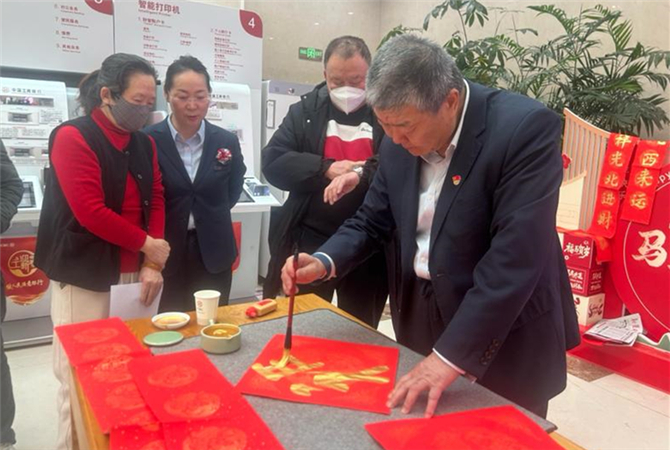 活动当天,书法名家们凝神聚气、笔走龙蛇,楷书端庄规整、行书潇洒飘逸、隶书古朴厚重,一幅幅饱含深情的春联与福字在笔尖跃然纸上。“老师,麻烦给我写一副‘马到成功事业顺,福临油城家安康’,给孩子新一年讨个好彩头!”“我想要一对带金融祝福的春联,保佑理财顺利、存款无忧!”现场客户热情高涨,纷纷排队等候定制专属祝福,有的驻足观赏书法创作,有的互相交流春联寓意,欢声笑语与笔墨清香交织成冬日里最动人的景致。工作人员穿梭其间,主动为等候的客户递上热茶,协助晾晒刚写好的墨宝,耐心解答金融咨询,用贴心服务让每一位参与者都感受到家一般的温暖。