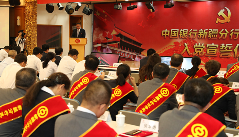 中国银行新疆分行隆重举行“两优一先”表彰大会暨新发展党员入党宣誓仪式