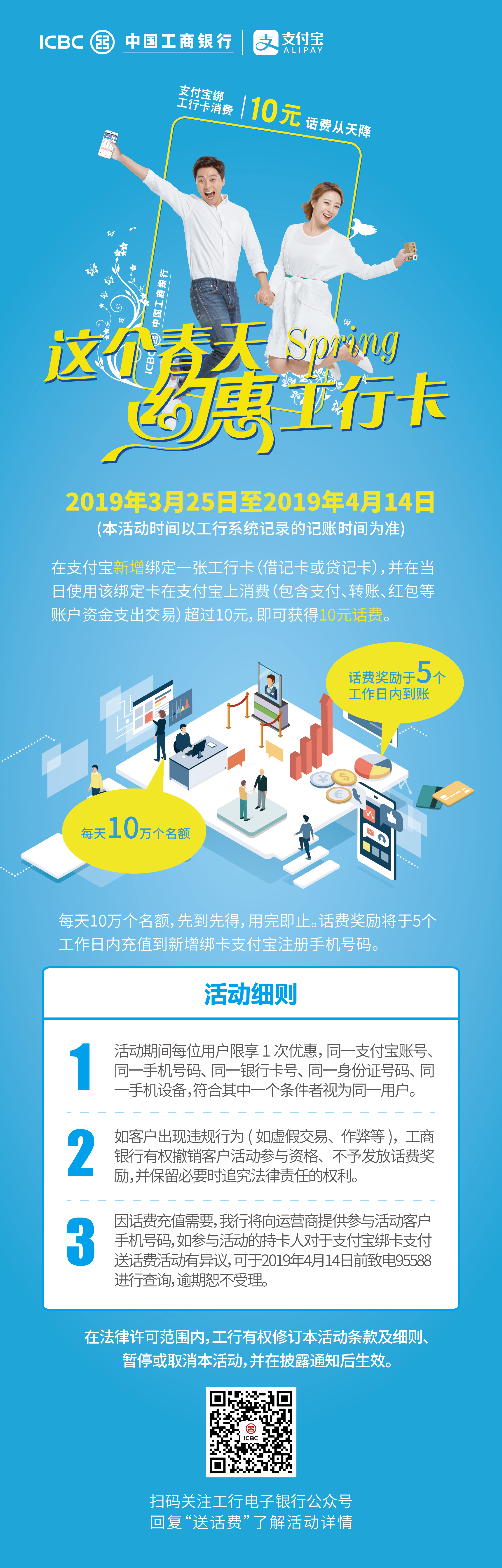 支付宝绑工行卡消费,10元话费从天降!
