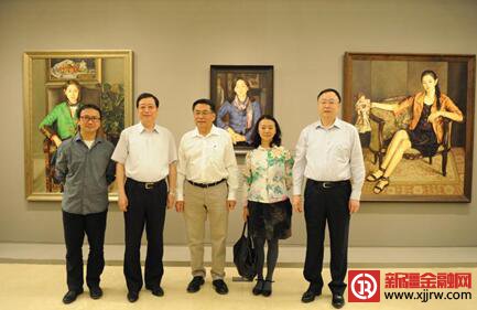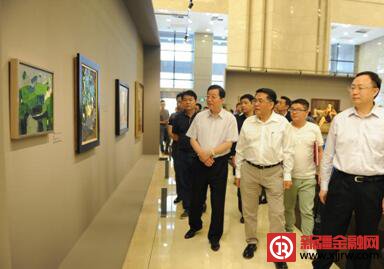 杨飞云一行与农行监事长袁长清、全国农行系统艺术家和补粉农行客户一同参观“丝路金穗”油画作品邀请展