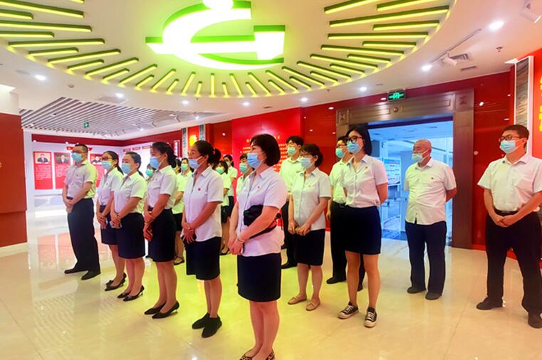 首先,工商银行克拉玛依大十字支行党总支书记带领全体党员同志面对党旗重温入党誓词,铿锵有力的誓言呐喊,焕发出作为一名新时代共产党员对初心使命的坚守,激励着彼此更加努力前行。